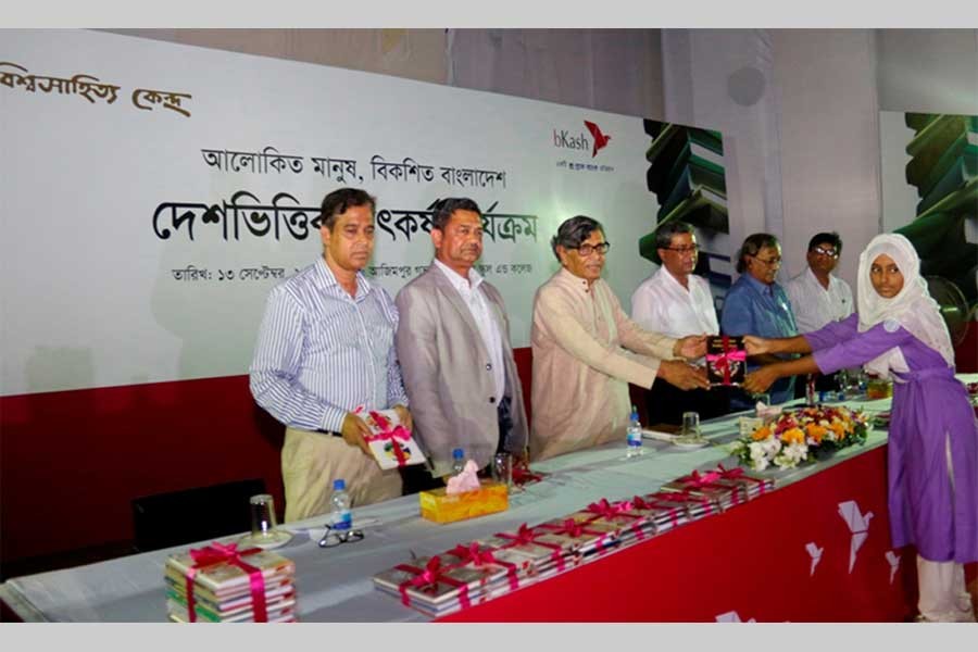 bKash, the leading mobile financial service provider in the country, has been supporting the ‘Nationwide Enrichment (Book Reading) Programme’ of Bishwo Shahitto Kendro since 2014 and provided around 178, 000 books to the programme.