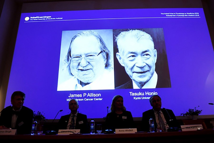 American James Allison and Japanese Tasuku Honjo won the 2018 Nobel Prize for Physiology or Medicine for discoveries leading to new approaches in harnessing the immune system to fight cancer.