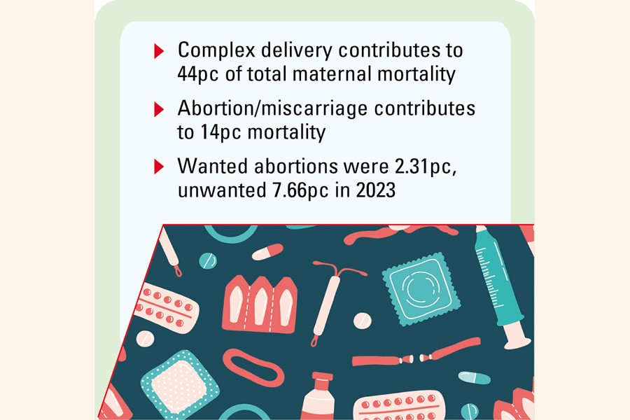 According to the Bangladesh Bureau of Statistics (BBS), wanted abortion was 2.31 per cent and unwanted abortion 7.66 (women aged 10-49) in 2023.