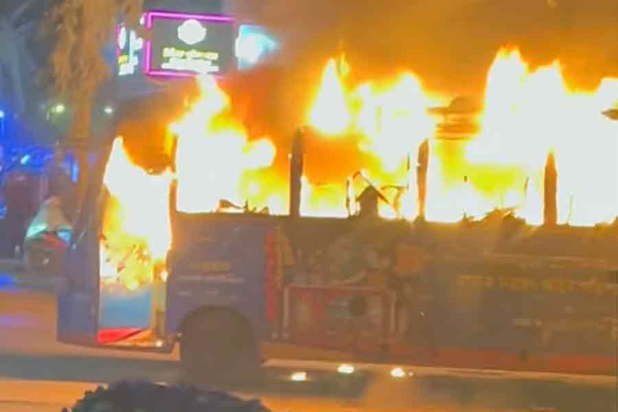 A bus has caught on fire in Dhaka’s Badda Link Road.