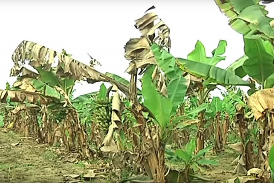 Specially, banana is rotting, turning dry and leaves of banana trees are drying up and dying. The green coconuts are turning dry, the flowering of mango and litchis is also hampered by 'burning' and drying away.