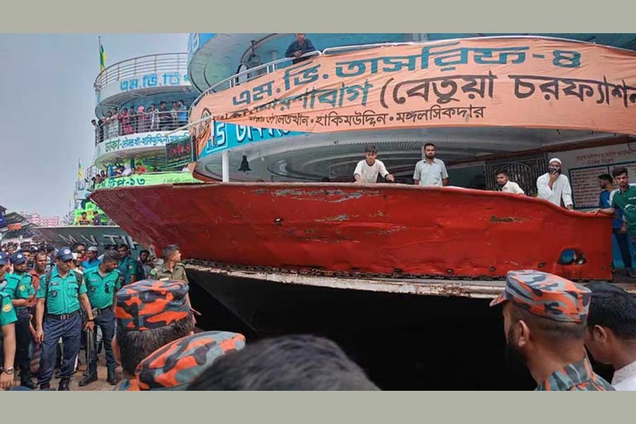 The MV Tasrif-4 and the MV Pubali-1 were tied to pontoon No. 11 with rope, according to the Fire Service. When another launch named the MV Farhan-6 attempted to dock between the two launches, a rope from the MV Tasrif-4 tore.