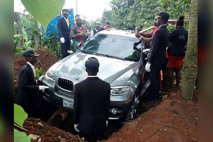 A Nigerian man has buried his father in a brand new BMW instead of a coffin in order to see him off in style in the local graveyard of Ihiala city, according to global media reports.