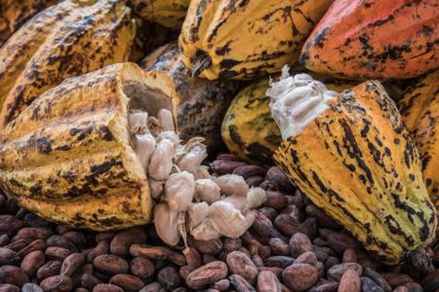 - The fruit - the cocoa pod - contains seeds surrounded by a white pulp. When the seeds are dried in the sun they turn a brownish colour and are known as cocoa beans