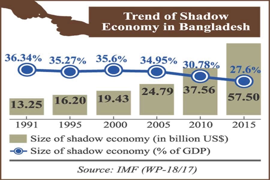 Sheikh Touhidul Haque, in his paper in 2011, showed that the size of the underground economy in Bangladesh was only 7 per cent of nominal GDP in 1973 which increased to 62.75 per cent of GDP in 2010. In a working paper of the International Monetary Fund (IMF), Dr Leandro Medina and Dr Friedrich Schneider estimated that the size of shadow economy in Bangladesh came down to 27.60 per cent of the country's GDP in 2015 which was 36.65 per cent in 2003. IMF paper is the latest estimation of black money so far.