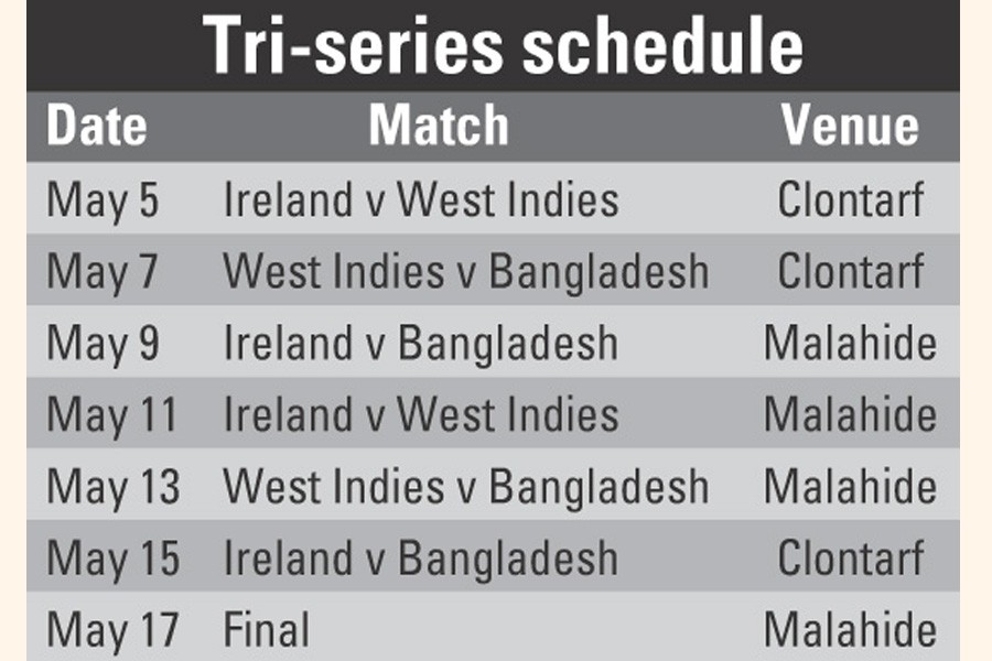 Ireland will host West Indies and Bangladesh for an ODI tri-series in the first half of May, with a double round-robin phase followed by a final, reports ESPNcricinfo.