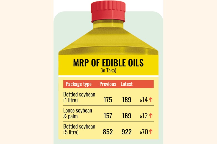 Loose soybean-and palm-oil MRP has been increased by 12 to Tk169 from Tk 157 a litre.