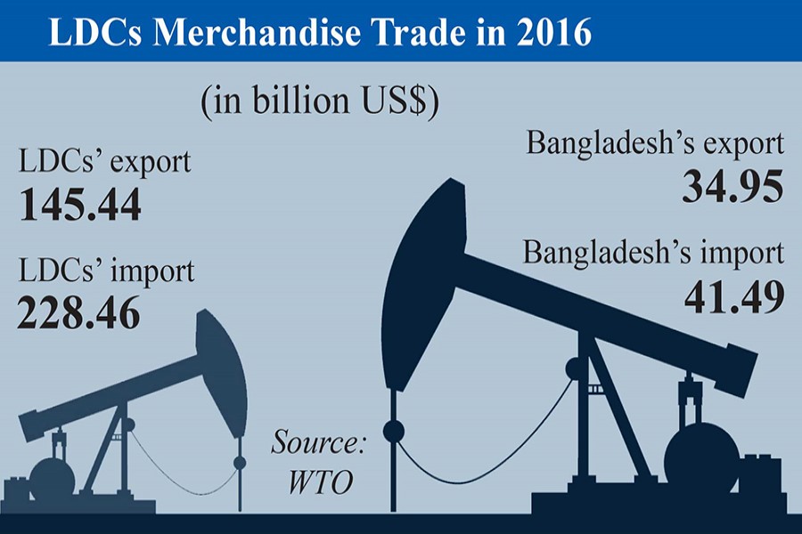 Bangladesh is also the largest importer among the LDCs, as per the WTO report. The country’s annual merchandise import stood at $41.49 billion in 2016.