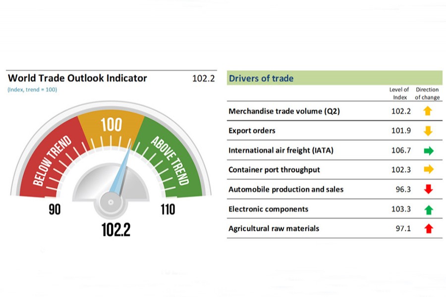 “The latest reading of the WTOI is slightly lower than that issued in August - a value of 102.6 - which pointed to a continuing recovery of trade in the second and third quarters,” said the press statement.