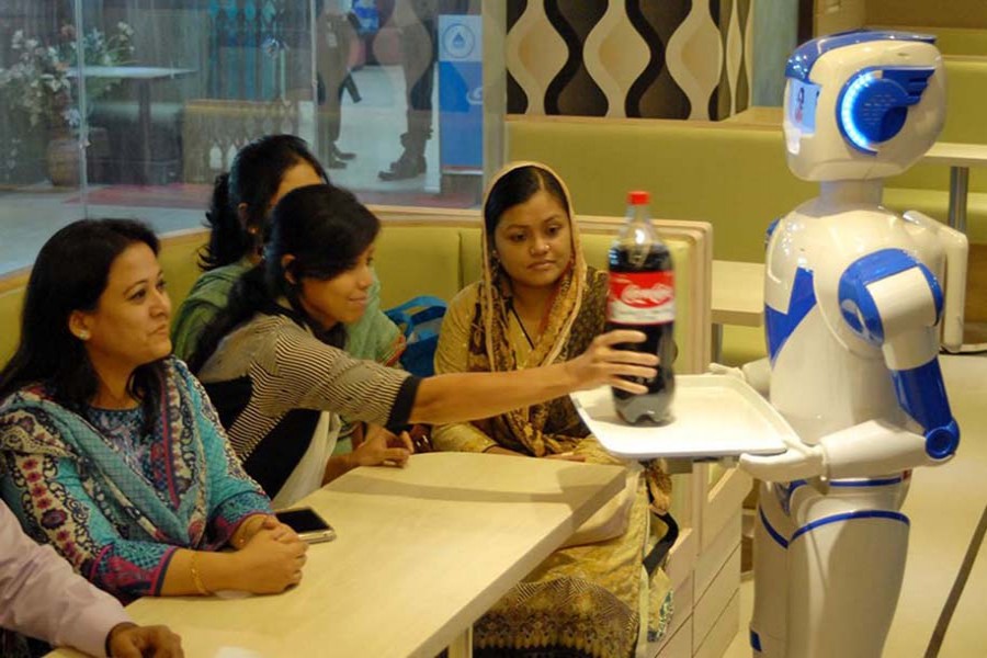 The arrival of walking robots serving foods in a Mohammadpur cafe on the western side of the Jatiya Sangsad caused enough excitement and enthusiasm among the Dhakites, particularly the young generation. Many might have made a plan to visit the wonder food outlet in order to be served by the artificial intelligence-rich robots. Privileged as they will feel, the differential automated service -unprecedented in the country-will give them a story to tell, at least for sometime before such service turns commonplace with its wide introduction.