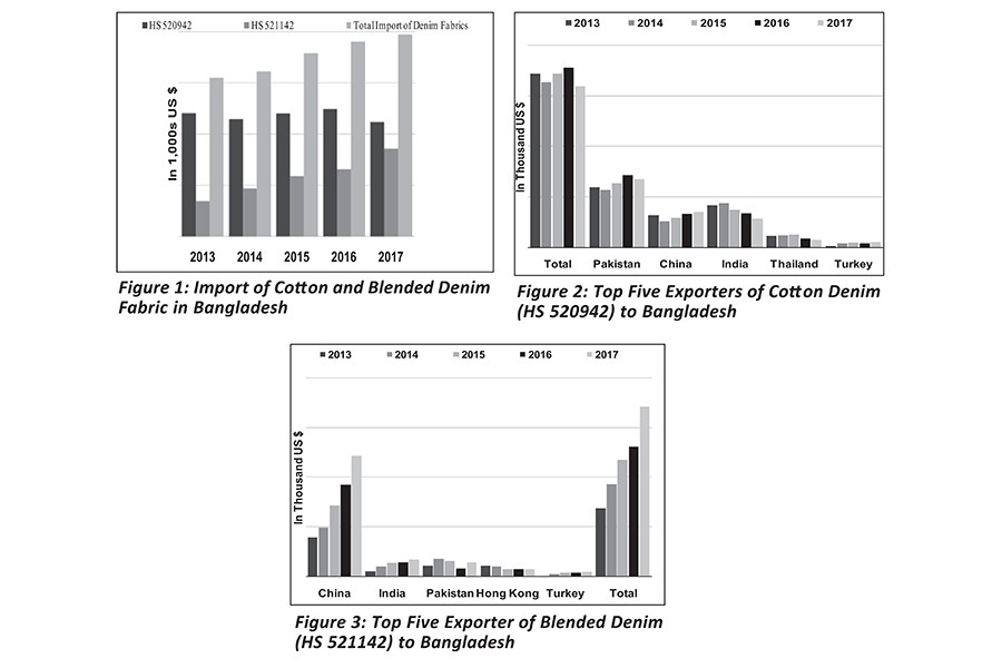 Denim enterprises in Bangladesh will do well if they give due consideration to manufacturing blended denim as well. The import trend (Figure-1) demonstrates a clearly increasing trend of higher imports of blended denim (HS 521142) in the recent years.
