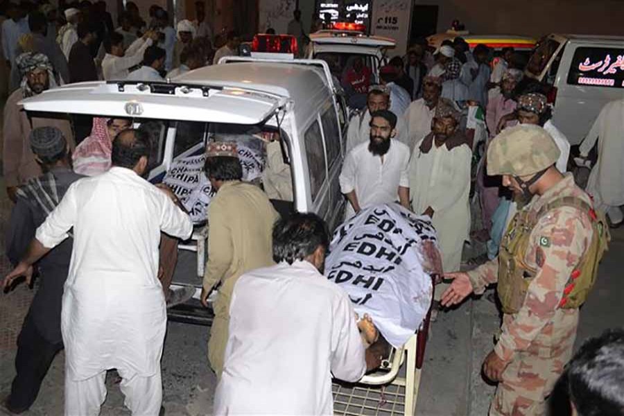 A suicide bomber killed 128 people, including a politician running for a provincial legislature, in the southwestern province of Baluchistan.