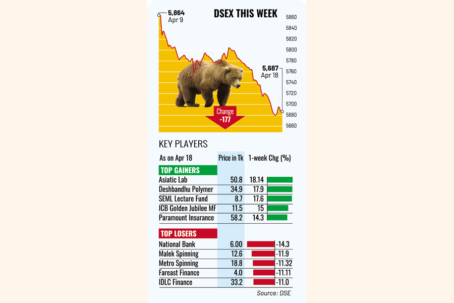 Following a five-day break on the occasion of Eid-ul-Fitr, equities were rattled on the Dhaka Stock Exchange (DSE) floor throughout the week, and the market index tumbled below 5,700-mark for the first time in three years on Thursday.