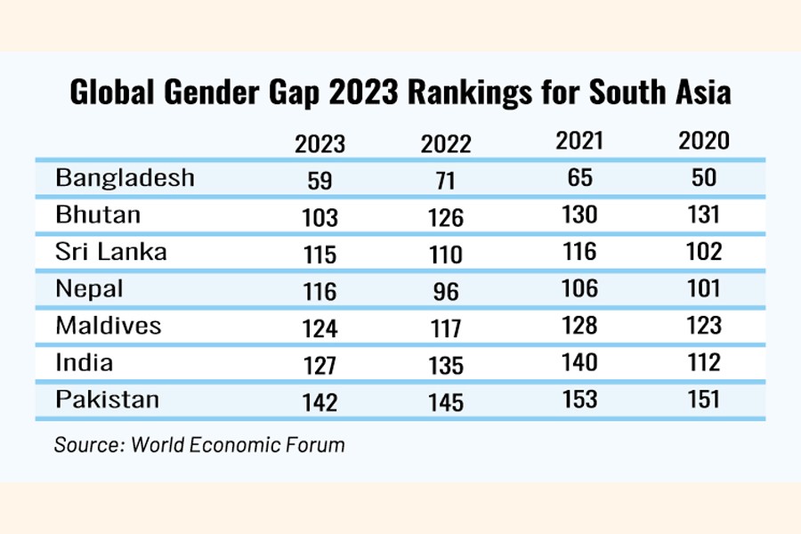 Bangladesh has ranked number one among South Asian countries in terms of gender parity, according to the latest Global Gender Gap Report 2023 by the World Economic Forum (WEF).
