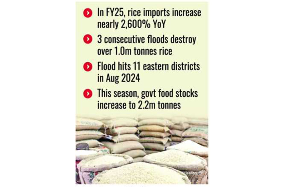 বন্যায় উৎপাদন ক্ষতিগ্রস্ত, ২০২৫ অর্থবছরে চাল আমদানি বেড়ে ৭০০ মিলিয়ন ডলার
