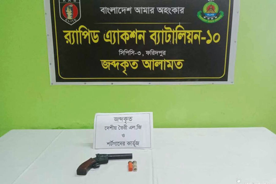 বিকেলে ফরিদপুর র্যাপিড এ্যাকশন ব্যাটালিয়ন-১০ এর সহকারী পরিচালক (মিডিয়া) ও সহকারী পুলিশ সুপার শামীম হাসান সরদার জানান, র্যাব-১০ এর সিপিসি-৩, ফরিদপুর ক্যাম্পের একটি আভিযানিক দল গোপন সংবাদের ভিত্তিতে ফরিদপুর জেলার সালথা থানাধীন আড়ুয়াকান্দি গ্রাম এলাকায় অভিযান পরিচালনা করে একটি দেশীয় তৈরী এল.জি (বন্দুক) এবং শর্টগানের দুই রাউন্ড কার্তুজ পরিত্যক্ত অবস্থায় উদ্ধার করা হয়।