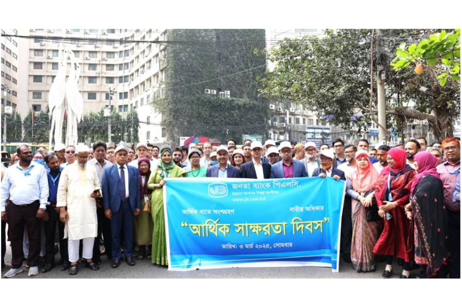 আর্থিক স্বাক্ষরতা দিবস (Financial Literacy Day) উপলক্ষে জনতা ব্যাংক পিএলসির উদ্যোগে এক বর্ণাঢ্য র ্যালি অনুষ্ঠিত হয়।