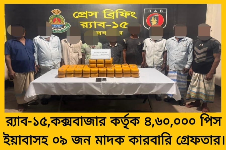 কক্সবাজারের বাকঁখালী নদী মোহনায় অভিযান চালিয়ে একটি ট্রলার থেকে ৪ লাখ ৬০ হাজার পিস ইয়াবাসহ ৯ জন মাদক কারবারিকে আটক করেছে র্যাব৷