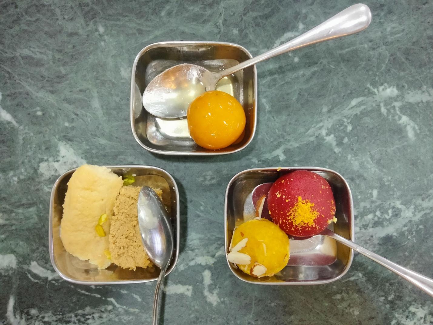 এখানে রয়েছে প্রায় ২৫ পদের মিষ্টি, যেগুলোর নাম পূর্বে উল্লেখ করা হয়েছে। মিষ্টিগুলোর ভেতর তাদের ইরানী ভোগ, ছানার গুড় সন্দেশ, মিহিদানা লাড্ডু, গোলাপজাম ও লালমোহনের স্বাদ নিয়ে দেখা হলো।