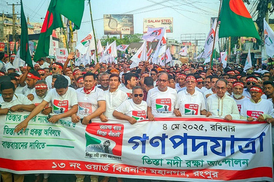 আজ রোববার (৪ মে) বিকেলে তিস্তা চুক্তি ও মহাপরিকল্পনা বাস্তবায়নের দাবিতে গণপদযাত্রার পূর্বে রংপুর নগরীর শাপলা চত্বরে আয়োজিত উদ্বোধনী অনুষ্ঠানে প্রধান অতিথির বক্তব্যে তিনি এসব মন্তব্য করেন।