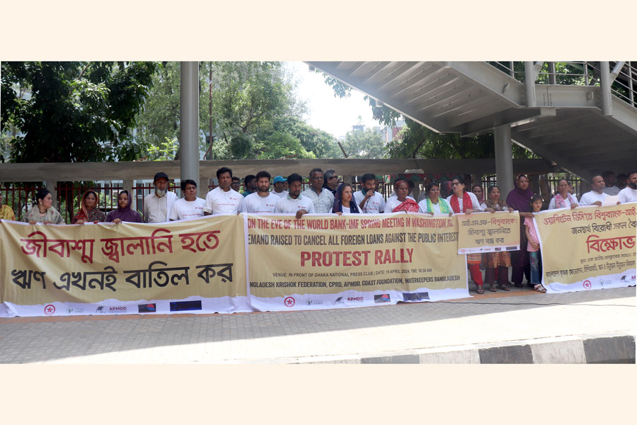 যুক্তরাষ্ট্রের ওয়াশিংটনে চলমান বিশ্বব্যাংক-আইএমএফের বসন্তকালীন সম্মেলনের প্রাক্কালে সারা বিশ্বে নাগরিক সমাজ তাদের ঋণ ব্যবস্থার সমালোচনায় প্রতিবাদ সমাবেশ করছে আজ শুক্রবার।