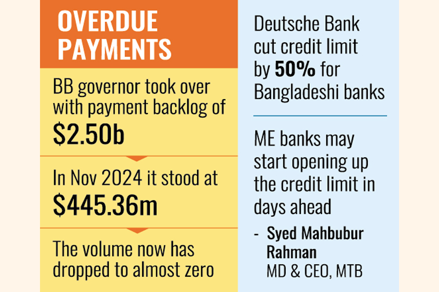কেন্দ্রীয় ব্যাংক নিয়মিতভাবে পরিশোধের পরিস্থিতি পর্যবেক্ষণ করেছে এবং এর ফলে উল্লেখযোগ্য সাফল্য অর্জিত হয়েছে। বাংলাদেশ ব্যাংকের তথ্য উদ্ধৃত করে ওই কর্মকর্তা জানান, ২০২৪ সালের নভেম্বর শেষে বকেয়া বিলের পরিমাণ ছিল ৪৪৫ দশমিক ৩৬ মিলিয়ন মার্কিন ডলার। কেন্দ্রীয় ব্যাংকের ওই কর্মকর্তা আরও বলেন, "এখন, এটি প্রায় শূন্যে নেমে এসেছে। এই উন্নতি বিশ্বব্যাপী সহযোগী ব্যাংকগুলোকে আমাদের ব্যাংকগুলোর জন্য ঋণপত্রের সীমা শিথিল করতে উৎসাহিত করছে, যা আমাদের অর্থনীতির জন্য একটি ভালো লক্ষণ।"