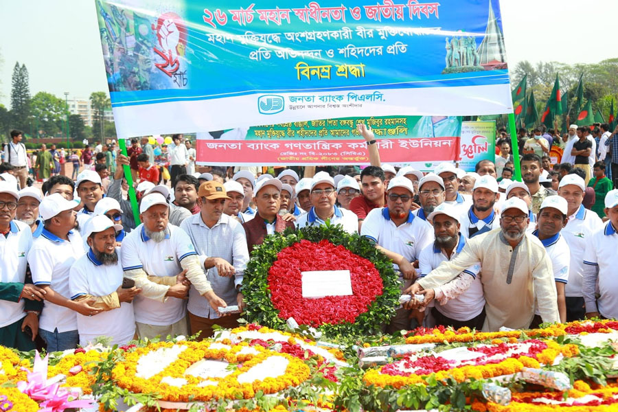 মহান স্বাধীনতা ও জাতীয় দিবস উপলক্ষে ২৬ মার্চ (মঙ্গলবার) সাভারে জাতীয় স্মৃতিসৌধে জনতা ব্যাংক পিএলসি এরপক্ষ থেকে পুস্পস্তবক অর্পণের মাধ্যমে গভীর শ্রদ্ধা জ্ঞাপন করা হয়। এক প্রেসবিজ্ঞপ্তিতে এ তথ্য জানিয়েছে জনতা ব্যাংক।