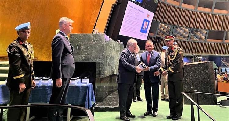 বৃহস্পতিবার জাতিসংঘ সদর দপ্তরে এ উপলক্ষে আয়োজিত এক অনুষ্ঠানে জাতিসংঘ মহাসচিব আন্তোনিও গুতেরেজের কাছ থেকে বাংলাদেশের পক্ষে এ মেডেল গ্রহণ করেন জাতিসংঘে নিযুক্ত বাংলাদেশের স্থায়ী প্রতিনিধি রাষ্ট্রদূত মোহাম্মদ আব্দুল মুহিত।