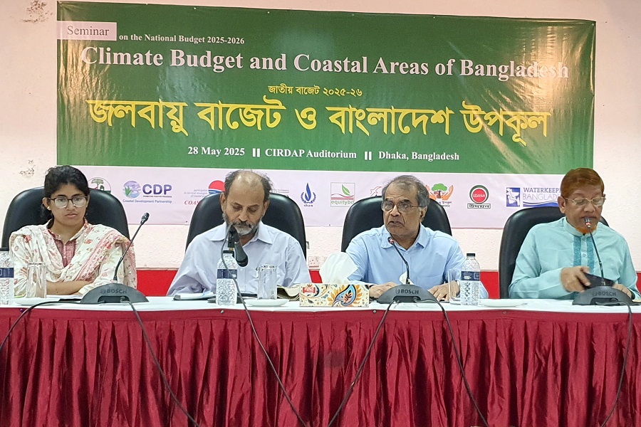 আজ ঢাকার তোপখানা সড়কের সিরডাপ মিলনায়তনে বেসরকারি উন্নয়ন সংস্থাসমূহের নেটওয়ার্ক ইক্যুইটিবিডি আয়োজিত “জাতীয় বাজেট ২০২৫-২৬; জলবায়ু বাজেট ও বাংলাদেশ উপকূল” শীর্ষক সেমিনারে বক্তারা এসব কথা বলেন। সেমিনারটির সহ-আয়োজক সংস্থাগুলো হলো কোস্ট ফাউন্ডেশন, সিপিআরডি, সিডিপি, ওয়াটার কিপার্স বাংলাদেশ, সুন্দরবন সুরক্ষা আন্দোলন, বিসিজেএফ, উদয়ন, দ্বীপ উন্নয়ন সংস্থা ও এসডিআই।