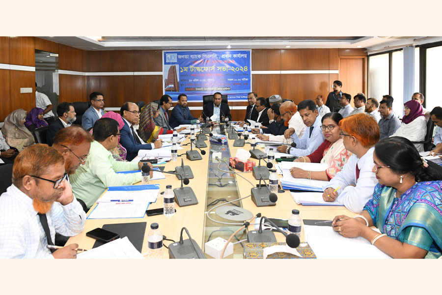জনতা ব্যাংক পিএলসির ম্যানেজিং ডিরেক্টর এন্ড সিইও মো. আব্দুল জব্বারের সভাপতিত্বে সম্প্রতি ব্যাংকের প্রধান কার্যালয়ে টাস্কফোর্সের সভা অনুষ্ঠিত হয়।