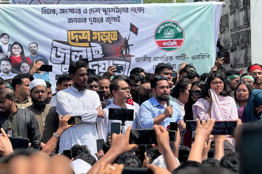 পথসভায় আরও উপস্থিত ছিলেন এনসিপির সদস্য সচিব আখতার হোসেন, যুগ্ম সদস্য সচিব ডা. তাসনিম জারা, দক্ষিণাঞ্চলের মুখ্য সংগঠক হাসনাত আবদুল্লাহ, উত্তরাঞ্চলের মুখ্য সংগঠক সারজিস আলম, দক্ষিণাঞ্চলের যুগ্ম মুখ্য সংগঠক মেজবাহ কামাল প্রমুখ। এর আগে নেতৃবৃন্দ জুলাই পদযাত্রায় অংশ নেন।