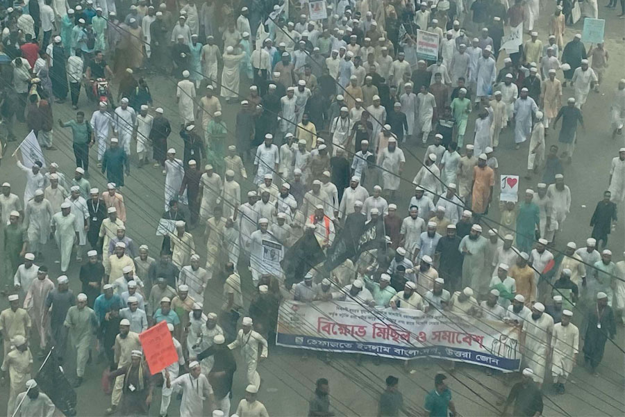 আজ বিকেল সাড়ে ৩টার দিকে বায়তুল মোকাররম মসজিদের উত্তর গেট থেকে বিক্ষোভ মিছিল শুরু হয়।