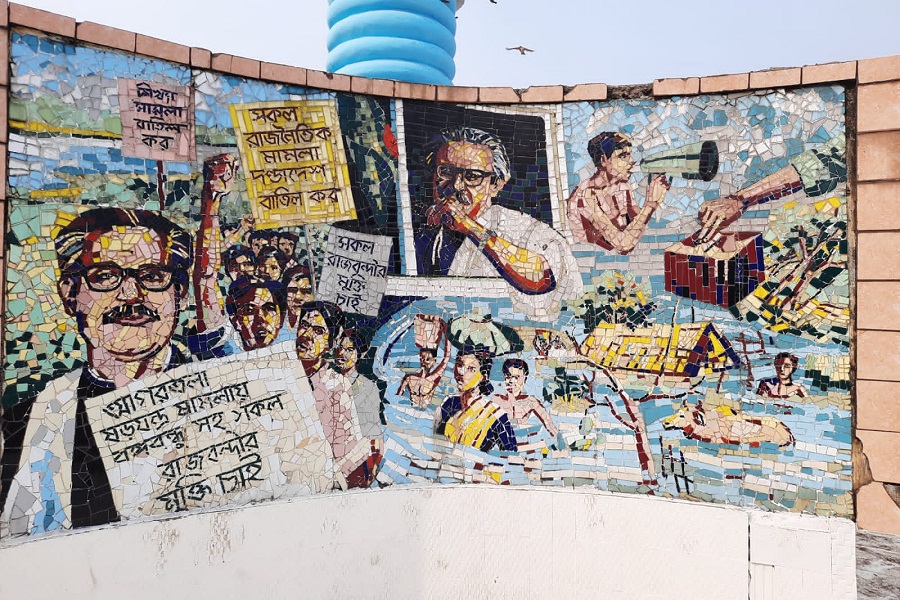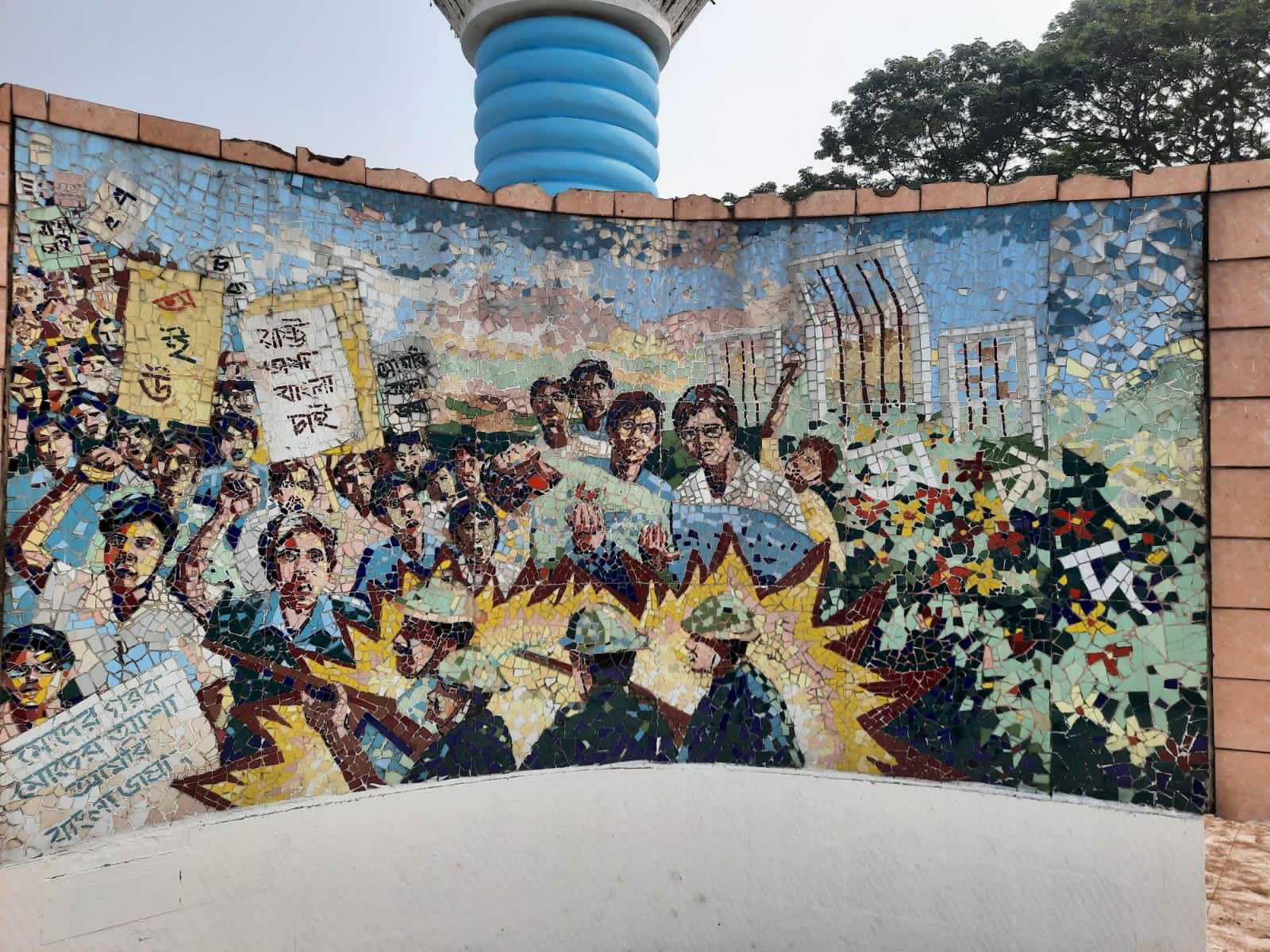 নির্মাণের সময় স্মৃতিস্তম্ভটিতে বায়ান্নর ভাষা আন্দোলন, ৬৬’র ছয় দফা আন্দোলন, ৬৯ এর গণ অভ্যুত্থান এবং ৭১ এর মহান স্বাধীনতা সংগ্রামের বিমূর্ত চিত্র ফুটিয়ে তোলা হয়েছিল।