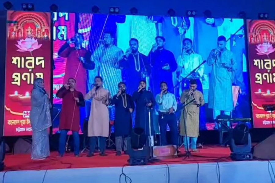 বৃহস্পতিবার (১০ অক্টোবর) চট্টগ্রামের একটি দুর্গাপূজার মণ্ডপে একটি ইসলামিক গান পরিবেশন করে বিতর্কের সৃষ্টি করে একটি গানের দল। পুলিশ জানিয়েছে, মহানগর পূজা উদযাপন পরিষদের এক সদস্যের অনুরোধে তারা সেখানে গান পরিবেশন করে।
