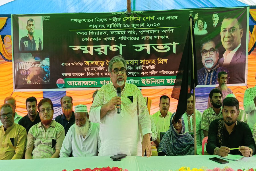 এর আগে তিনিসহ বিএনপি ও ছাত্র দলের নেতাকর্মীরা সেলিম শেখ এর পিতা ও পরিবারের সদস্যদের নিয়ে ধুরাইল বাজার থেকে কালব্যাজ ধারণ করে কালো পতাকা নিয়ে শোক মিছিল সহকারে কাউলরা কবরস্থানে শহীদ সেলিম শেখের কবরে পুস্পস্তবক অর্পণ করে শহীদের আত্মার মাগফেরাত কামনা কিরে মুনাজাত করেন ।