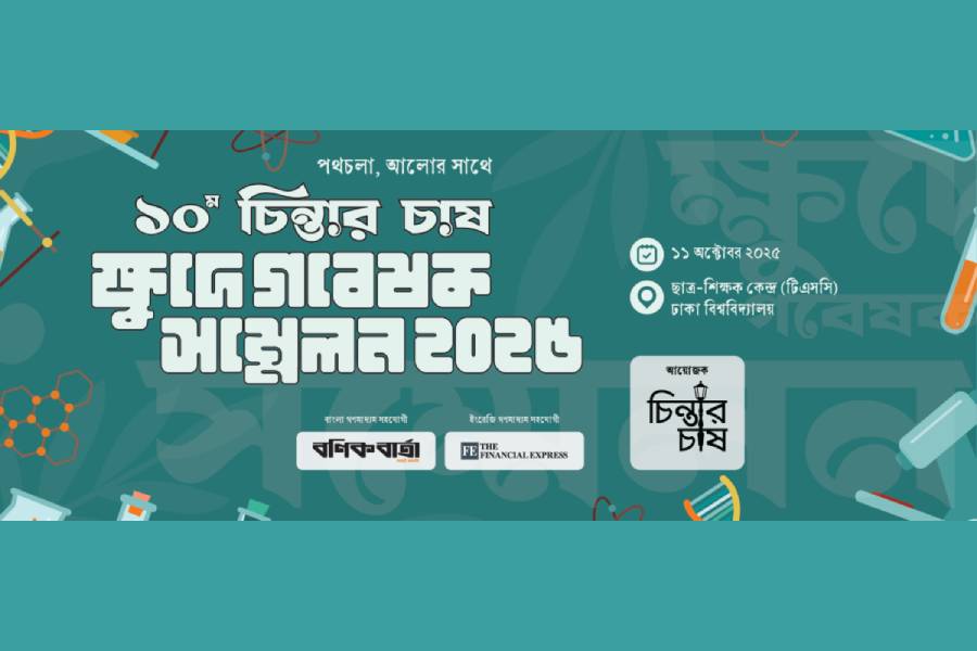 স্বেচ্ছাসেবী গবেষণা সংগঠন “চিন্তার চাষ” এর আয়োজনে ঢাকা বিশ্ববিদ্যালয়ের ছাত্র-শিক্ষক কেন্দ্র (টিএসসি)-এ স্কুল শিক্ষার্থীদের অংশগ্রহণে ‘১০ম চিন্তার চাষ ক্ষুদে গবেষক সম্মেলন, ২০২৫’ অনুষ্ঠিত হতে যাচ্ছে।
