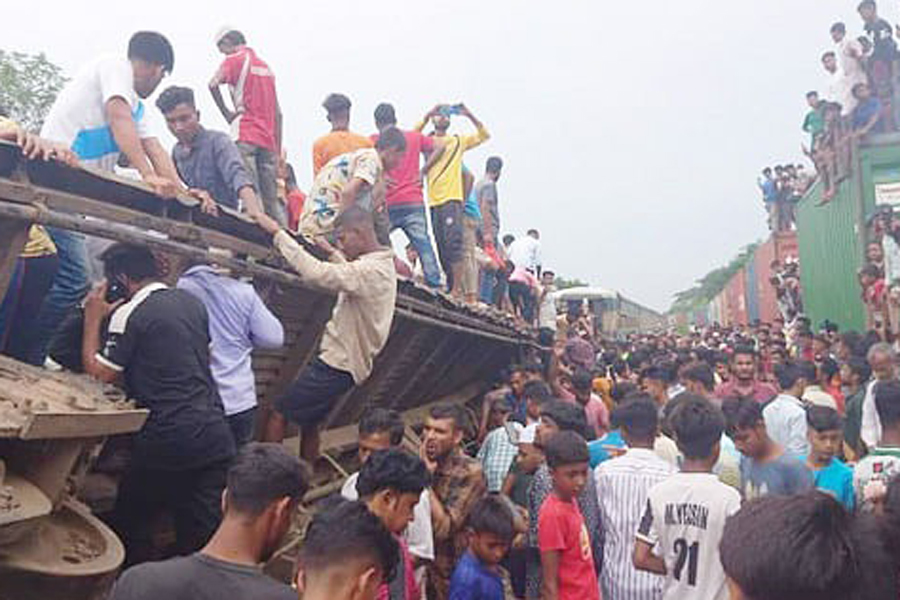 A freight train from Chattogram crashed into the Egaro Sindhur Express headed from Kishoreganj to Dhaka, rail police say