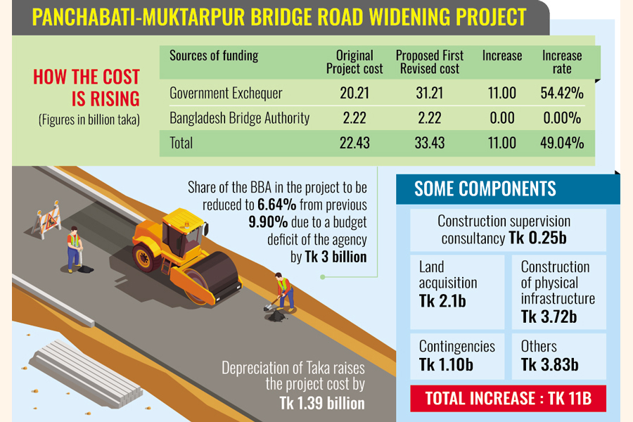 The proposal said Tk 31.21 billion would come from the government exchequer, which was Tk 20.21 billion in the original project, reflecting an increase of 54.42 per cent.
