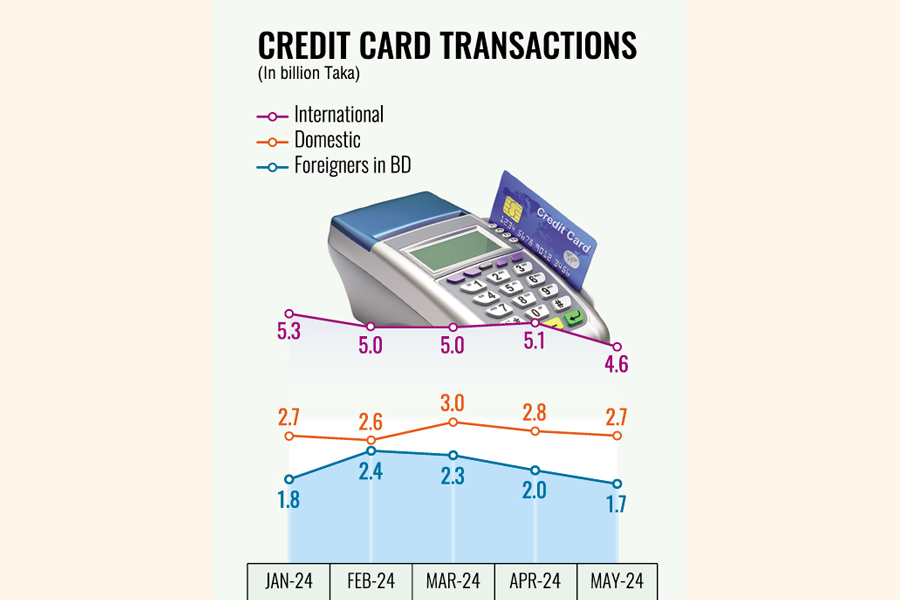 Domestic credit-card transactions within Bangladesh also saw a decrease during the period in question, according to data available with the Bangladesh Bank.