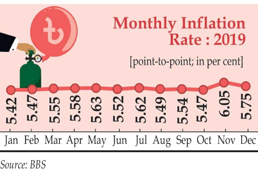 According to the Bangladesh Bureau of Statistics (BBS) data unveiled on Tuesday, the average inflation rate was 5.59 per cent in 2019 as against 5.55 per cent for the previous calendar year 2018.