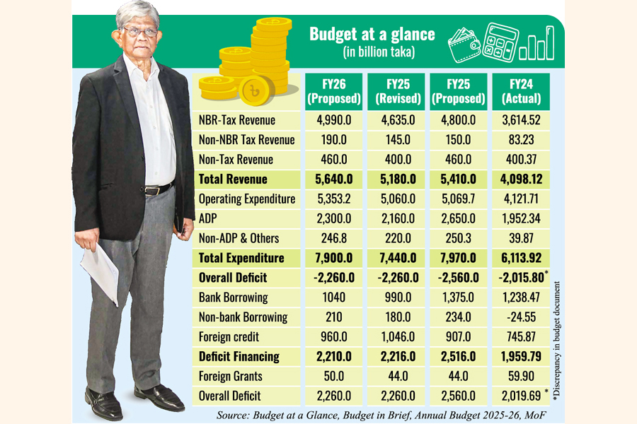 Ambitious revenue target faces tough realities: a test of reform and resolve: The upcoming fiscal year's total resource-mobilisation target has been set at an eye-popping Tk 5.64 trillion, with the lion's share-Tk 4.99 trillion or 9.0 per cent of GDP-expected to come from the National Board of Revenue (NBR).