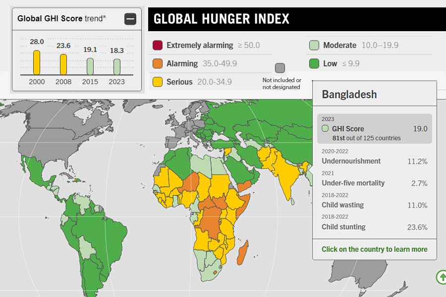 Bangladesh is among even countries that have achieved reductions of five points or more between their 2015 and 2023 GHI scores.