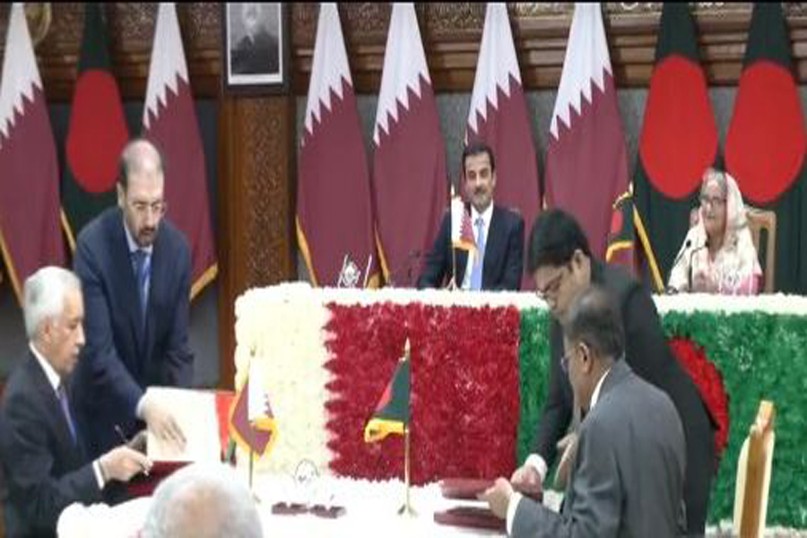 Prime Minister Sheikh Hasina and visiting Qatari Emir Sheikh Tamim bin Hamad Al Thani witnessed the signing of the accords, after a one-on-one parley between the two followed by official talks.