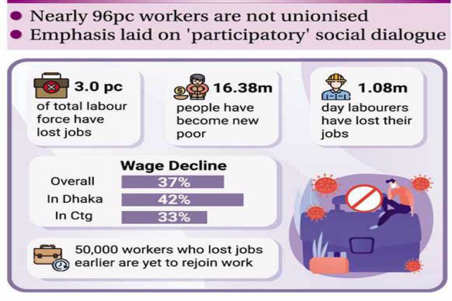 The Bangladesh Institute of Labour Studies (BILS) and the Centre for Policy Dialogue (CPD) conducted the joint study styled 'Impact of Covid-19 on the Labour Market: Policy Proposals for Trade Union on Employment, Gender and Social Security for Sustainable Recovery'.