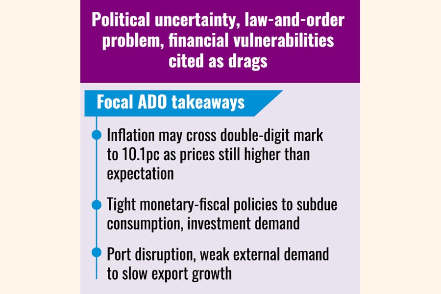 About the higher inflation, the ADB says Bangladesh's inflation is projected to increase to 10.1 per cent in FY2025, higher than the April 2024 forecast.