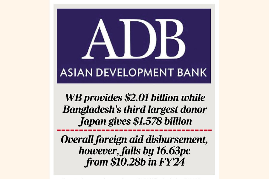 ADB's contribution was a key component of Bangladesh's total foreign aid disbursement, which stood at $8.57 billion in the fiscal year. The overall foreign aid disbursement by all bilateral and multilateral donors, however, fell by 16.63 per cent from $10.28 billion in FY 2023-24, reflecting broader challenges in project implementation and aid inflows.