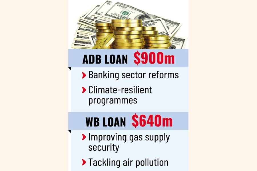 Two top global lenders on Thursday approved loans amounting to US$1.54 billion to support banking-sector reforms, economic development, climate-impact resilience, and energy security in Bangladesh.