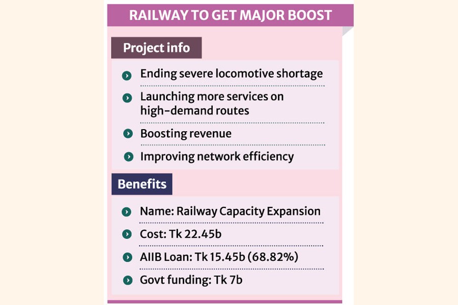 "To address the critical shortage of serviceable locomotives in Bangladesh, the government plans to procure 60 new metre-gauge locomotives," according to a project summary prepared by the AIIB.