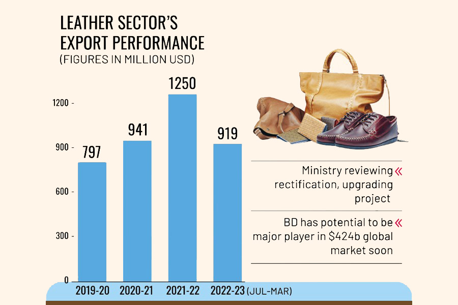According to a report, Bangladesh produces 350 million square feet of leather annually, of which only 20 to 25 per cent is required locally, and the rest is exported.