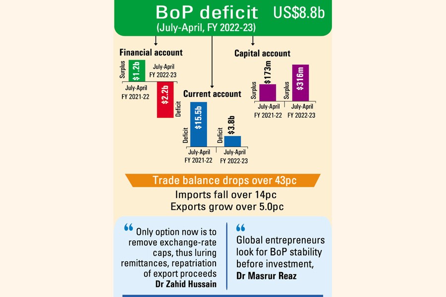 The gap between what the economy earns and what it spends hit US$8.8 billion in the ten months, according to Bangladesh Bank (BB) data released Thursday.